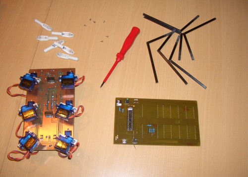 ![]() » Here you can see the spider with assembled legs and the "brainboard". |
