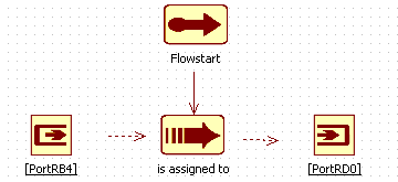 2. Assignment (BitIn to BitOut): Port pins are configured using tagged values (via context menu) ![]() Generates the following code: