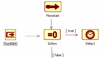 3. Branch (IsZero): Branches are configured using the transitions' guard conditions ![]() Generates the following code: